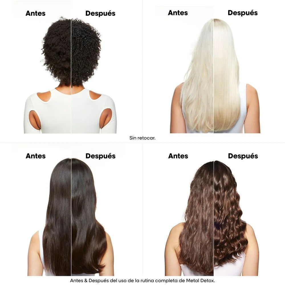 El L'Oréal Professionnel Metal Detox Shampoo 1500 ml, es un champú profesional de la línea “Metal Detox”, creado para limpiar a profundidad el cabello y eliminar metales acumulados como cobre u otros minerales presentes en el agua que se adhieren a la fibra capilar con el tiempo o tras procesos químicos.